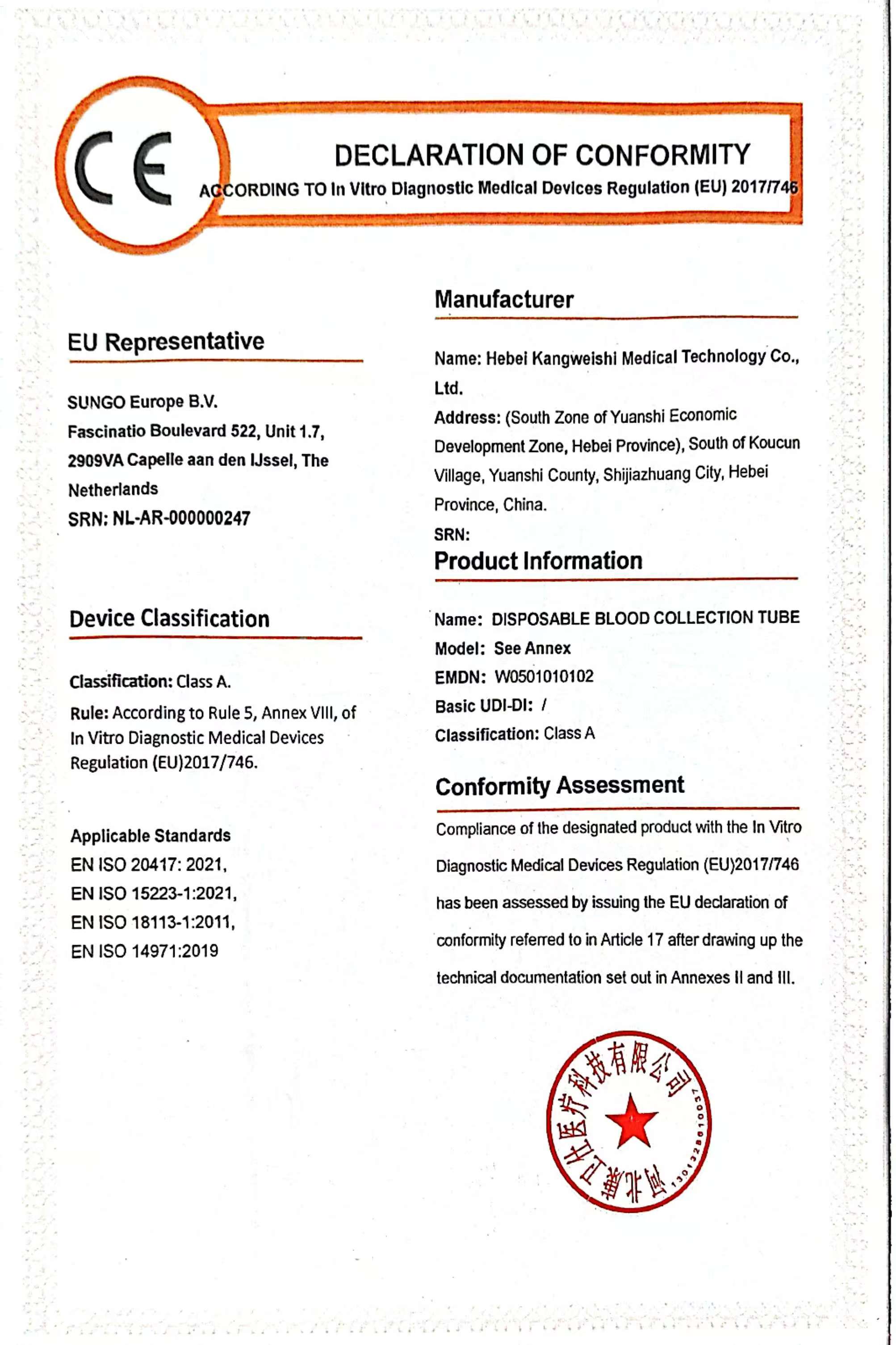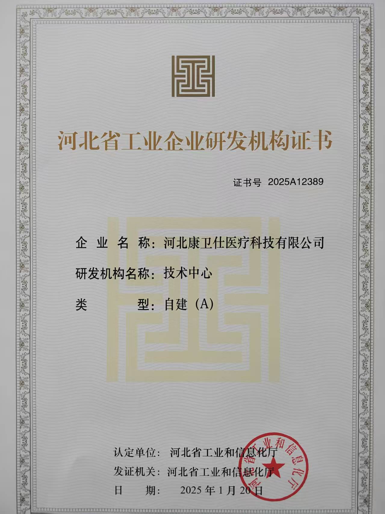 河北康衛仕醫療科技有限公司自建A技術中心